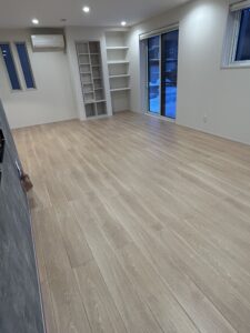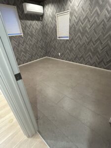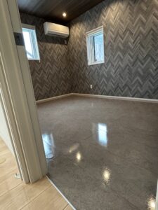 床材はモクリアライトウォールナットと石目調はグレーでした。
