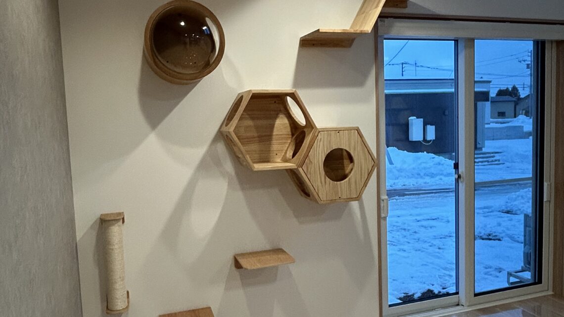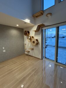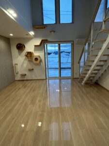 愛猫家のお客様でキャットウォークを設置し猫ちゃんが暮らしやすい住宅でした。ほとんどのドアには猫ちゃんが自由に出入りできる猫ドアも設置したましたよ🐈