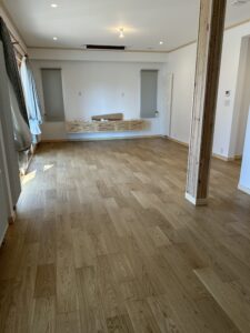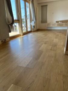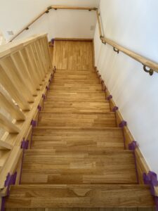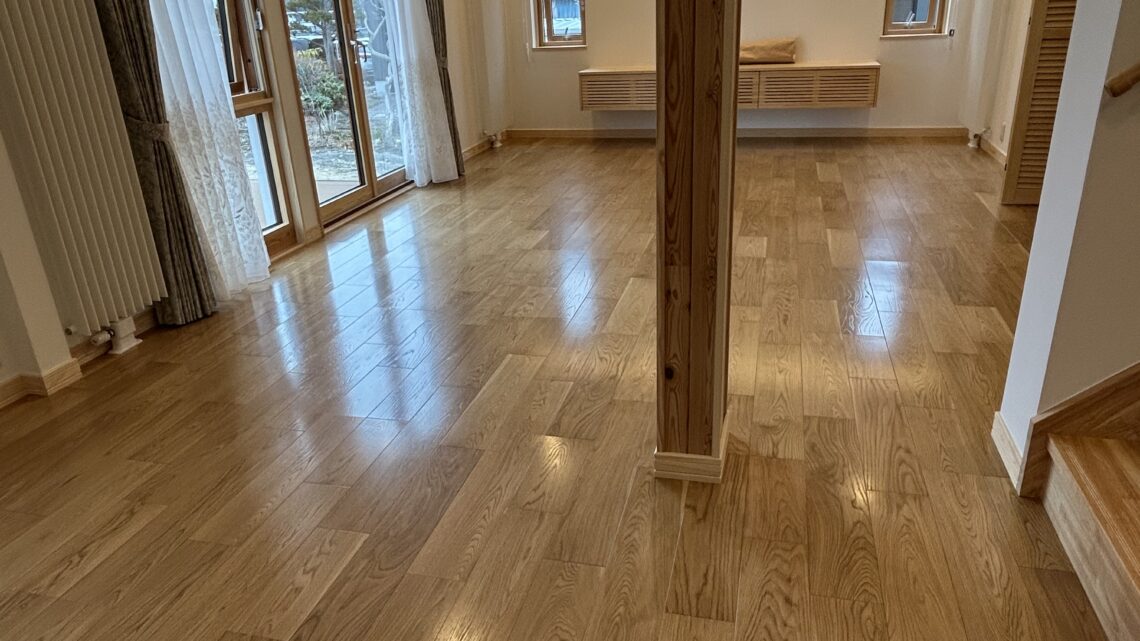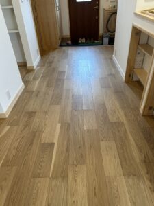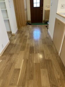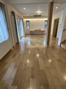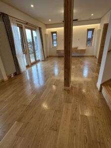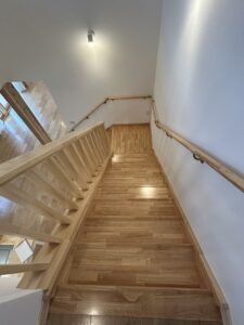 フローリングはすり傷に強いガラスコーティング、階段は滑りにくいUVコーティングのご注文でした。