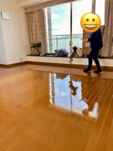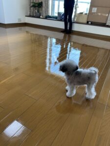 床が滑って困っていたオーナー様とトイプードルのぽんちゃんからのご依頼です。ペットコーティング施工後は元気に走り回ったりジャンプしても滑りませんでした。オシッコを失敗しても大丈夫ですよ🙆